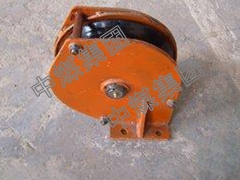 耙斗装岩机用导向轮用于对软体管道或者钢丝,zmjt057尼龙绳等软体线性物体移动过程中的方向引导。导向轮带有滑轮结构,在某些项目或产品中导向轮会起到省力的作用。耙斗装岩机用导向轮由套筒、调节丝杠、脚轮、底座、转向座和销钉组成,套筒内套装有调节丝杠,调节丝杠的一端安装有摇把,另一端通过调整丝母与脚轮架连接,脚轮架与脚轮连接;转向座通过销钉与底座连接,底座与转向座上分别设有相同中心距的对应孔,U型销钉依次插入至转向座和底座对应孔内,U型螺栓将底座 固定在拖车的矩形管上。zmjt057